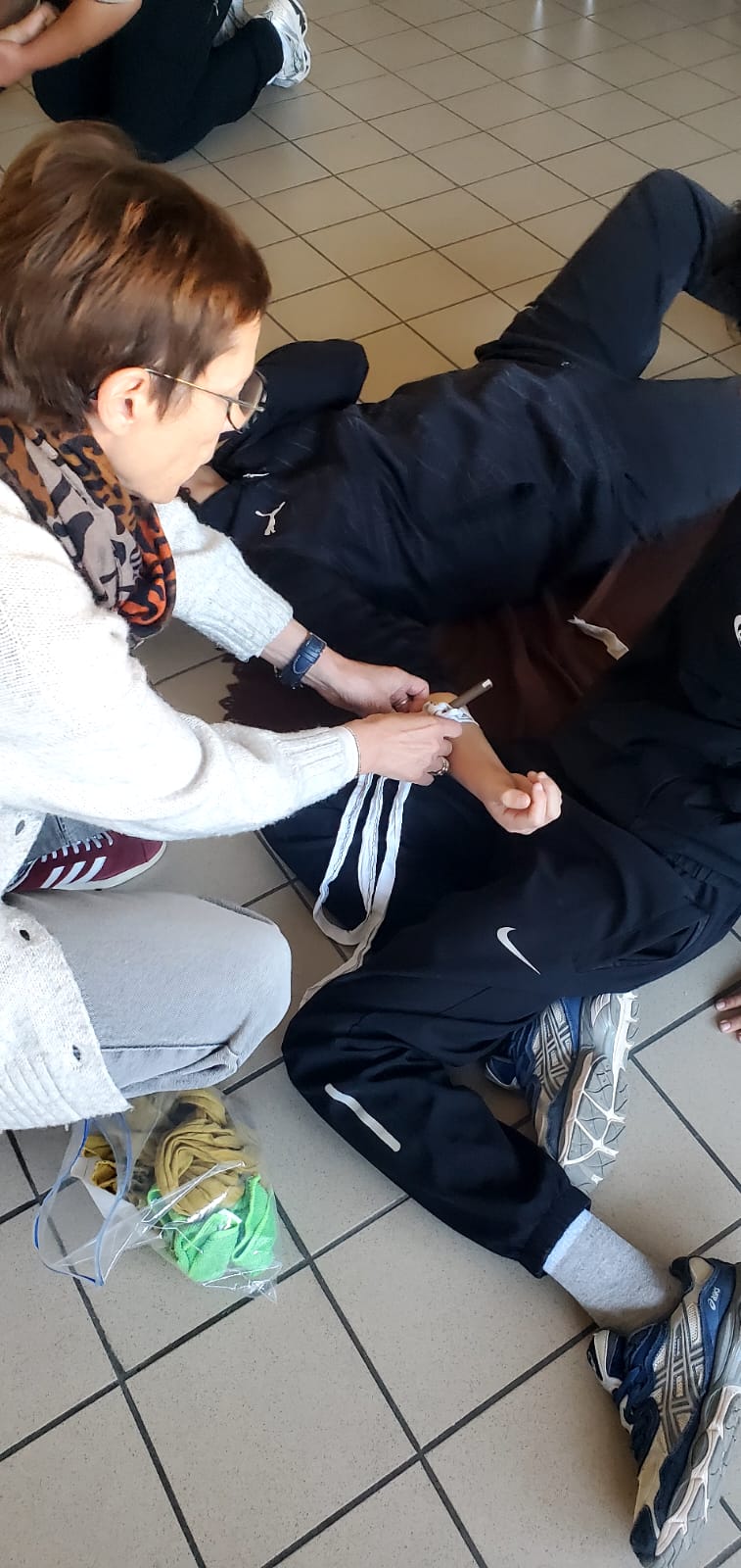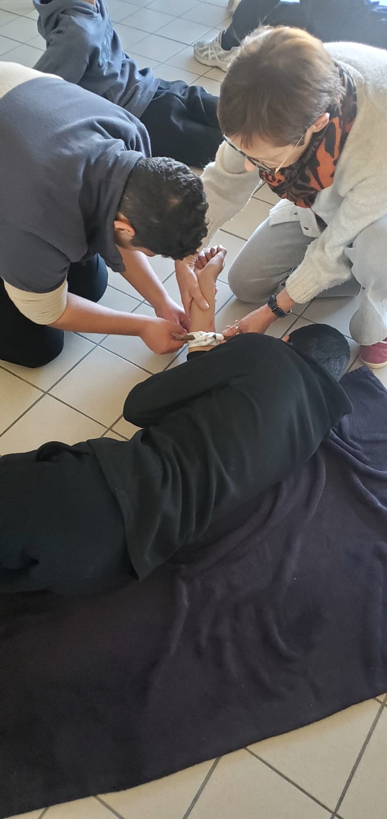 Durant deux mercredis matin, les élèves de 4ème et 3ème de l'option arbitrage ont participé à une formation secourisme de 3h, dispensée par Mme Ramaré, l'infirmière du collège.